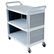 These rubbermaid utility carts have versatile flat shelves designed to transport oversized items.